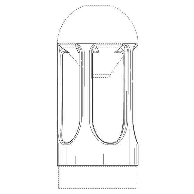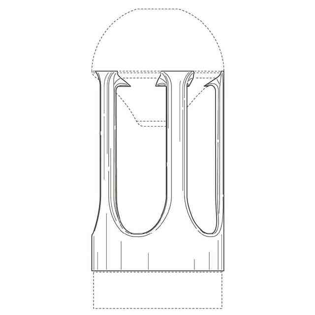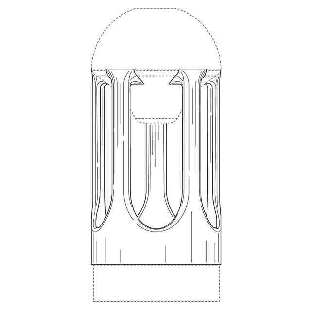 実線で表された部分が、意匠登録を受けようとする部分である。一点鎖線は、意匠登録を受けようとする部分とその他の部分との境界を示す。各図の表面に描かれた細線は、立体表面の形状を表す線である。