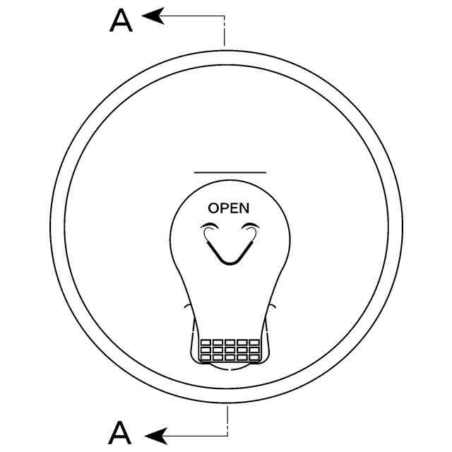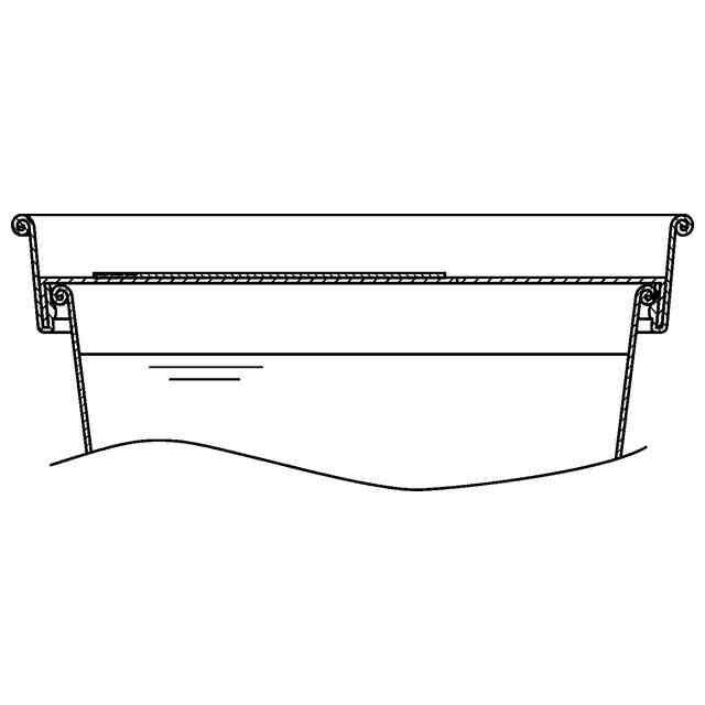 本意匠に係る物品は、包装用容器に取り付けられて用いられる蓋である。この蓋は、平面図や右側面図、A-A線断面図、斜視図1に示すように、天蓋部と、この天蓋部の周縁部分に設けられて該天蓋部と接合一体化された側壁部とを備えている。また、天蓋部には飲み口を開閉するための飲み口開閉部が形成されており、この飲み口開閉部にはラベルが接合されている。参考断面図及び斜視図2に示すように、飲み口開閉部が開いて飲み口が開口した状態は、ラベルに形成された爪が切りこみに差し込まれて維持される。また、ラベルには人物の表情を模した図柄が描かれており、斜視図1に示す飲み口開閉部が閉じた状態のときの表情と斜視図2に示す飲み口開閉部が開いた状態のときの表情とが変化するようになっている。