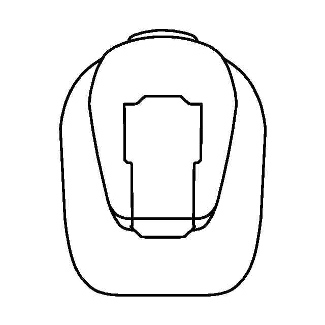 背面図は正面図と対称に表れるので省略する。各図に表された細線は、立体表面の形状を特定するためのものであって、模様ではない。