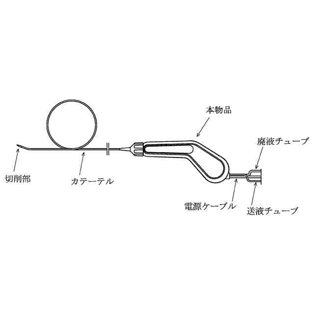 本物品は、先端部に血管内の物体を切削する切削部を備えたカテーテルを操作するために用いられるハンドルであって、カテーテルと電源ケーブルと送液チューブおよび廃液チューブが接続されて使用されるハンドルである。