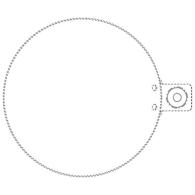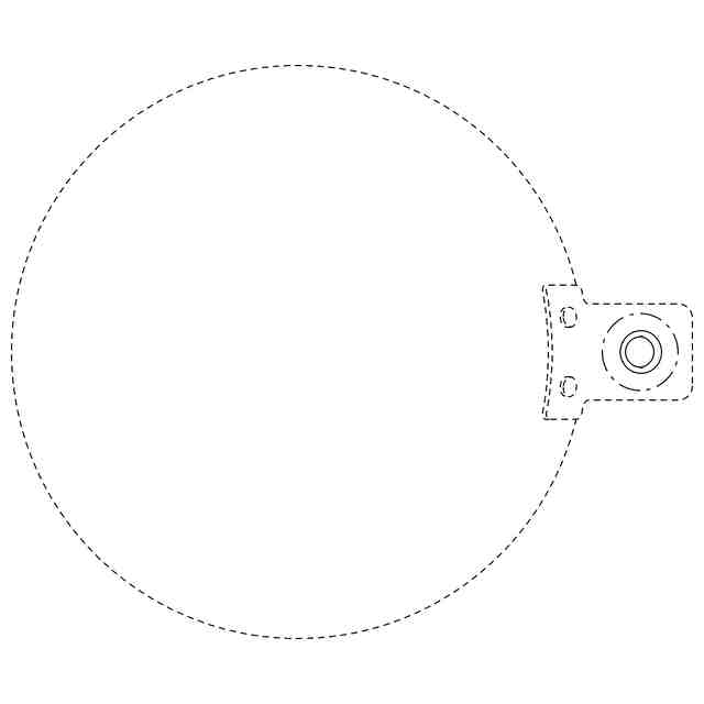 背面図は、正面図と対称に表れるため、省略する。部分意匠として意匠登録を受けようとする部分を実線で、それ以外の部分を破線で表している。一点鎖線は、部分意匠として意匠登録を受けようとする部分とその他の部分との境界のみを示す線である。