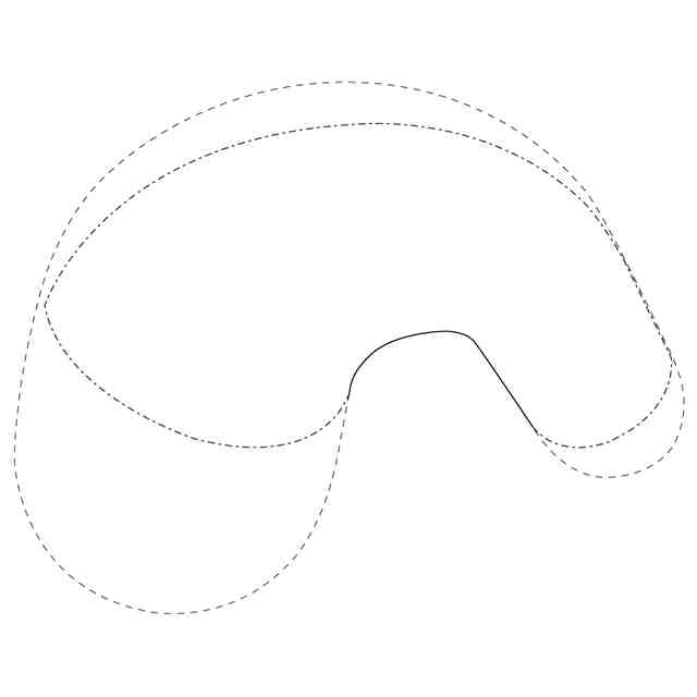 実線と一点鎖線で囲んだ部分が意匠登録を受けようとする部分である。同部分はシリコンゴムのように柔軟性のある素材で成り、透光性を有する。同部分は、使用方法を示す参考図に表すように、耳輪脚をまたぐよう耳介内に固定される。使用方法を示す参考図においては、ドライバ類を収納するカプセル状の部品が透過的に現れている状態が描かれている。左右対称のもの一対のうち、右耳装着用のみを表した。