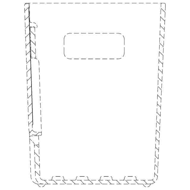実線で表された部分が、部分意匠として意匠登録を受けようとする部分である。左側面図は右側面図と対称に表れるので省略する。断面図を含めて部分意匠として意匠登録を受けようとする部分を特定している。