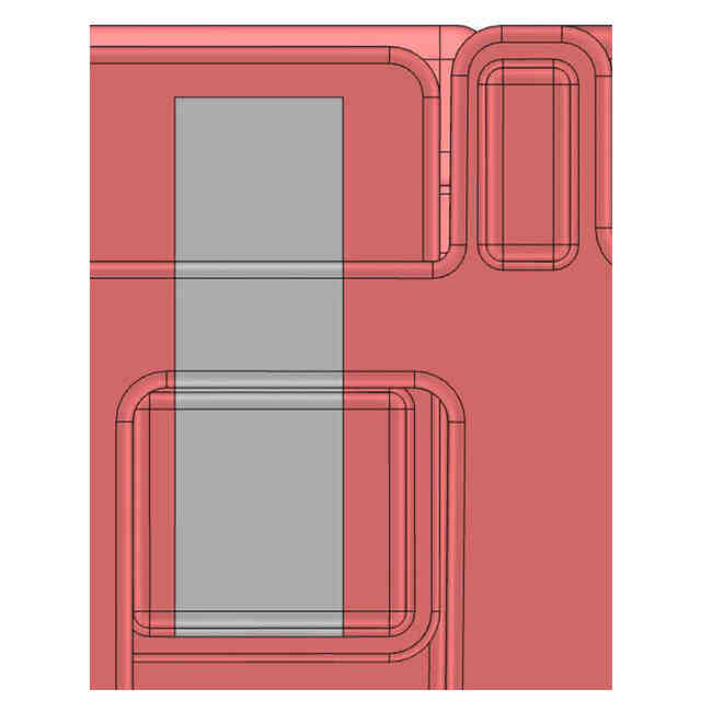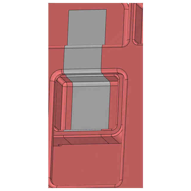 左側面図は右側面図と同一である。各図面の表面部全面に表された濃淡は、いずれも立体形状を特定するためのものである。赤色で表された部分以外の部分が部分意匠として意匠登録を受けようとする部分である。赤色で着色した部分と部分意匠として意匠登録を受けようとする部分との境界線は、形状線を表すものではなく、境界のみを示す線である。