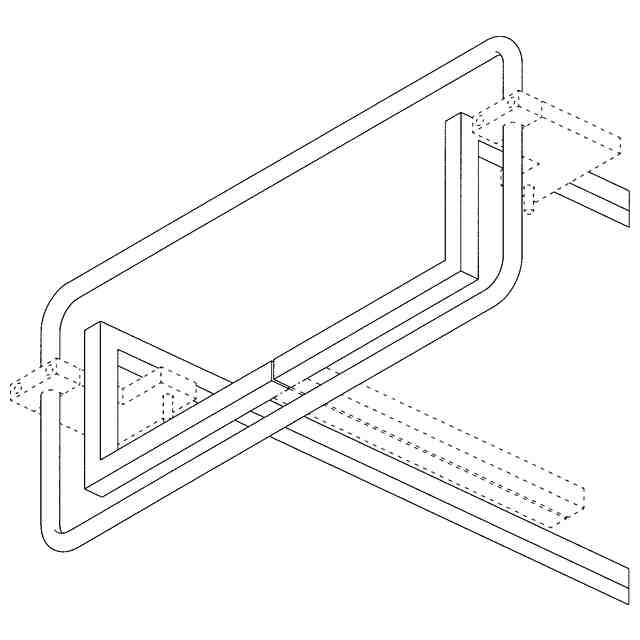 実線であらわした部分が、意匠登録を受けようとする部分である。一点鎖線は意匠登録を受けようとする部分とその他の部分の境界のみを示す線である。斜視図及び拡大図を含めて意匠登録を受けようとする部分を特定している。背面図は正面図と対称にあらわれる。