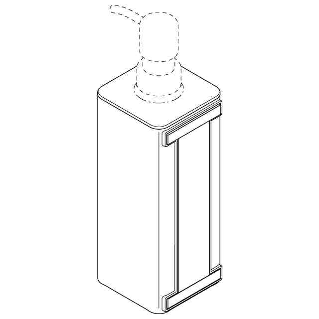 本願意匠に係る物品は、例えば、身体洗浄剤、シャンプー、リンス等を供給するために使用される。本物品は、背面側にマグネットおよび滑り止めが設けられており、浴室等の壁面に取付けて使用することができるものである。