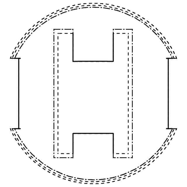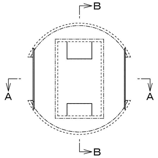 実線で表わした部分が意匠登録を受けようとする部分である。一点鎖線は意匠登録を受けようとする部分とその他の部分との境界のみを示す線である。A-A断面図及びB-B断面図を含めて意匠登録を受けようとする部分を特定している。