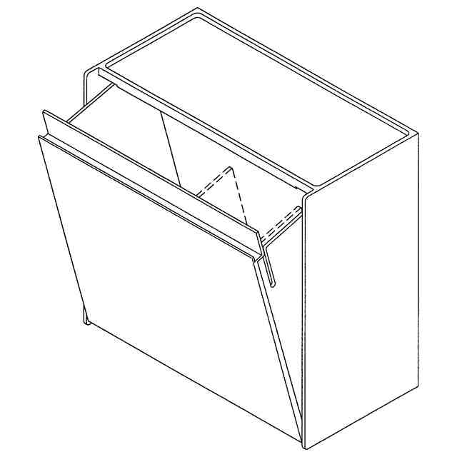 本物品は、ごみ箱としても使用できる収納箱であって、例えば、マグネットを用いて壁面や冷蔵庫、ウォーターサーバー等に取り付けることで、小物を収納したり、ごみ箱として使用したりすることができるものであり、「使用状態を示す参考斜視図」に示すように、スタッキングさせることもでき、また、ごみ箱として使用する場合には、収容部に両側面のスリットを用いて袋を取り付けることで、閉めた状態では外から袋が見えないものとして、綺麗に袋を装着することができるものである。