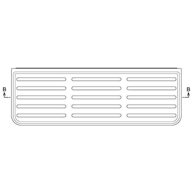 薄墨を塗った部分以外の部分が部分意匠として意匠登録を受けようとする部分である。なお、A-A線拡大断面図及びB-B線断面図においては、実線部分が部分意匠として意匠登録を受けようとする部分である。右側面図は左側面図と対称に表れる。