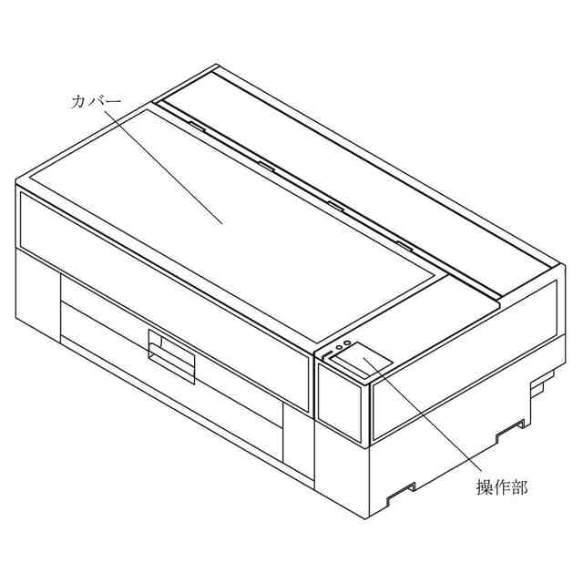 本物品は、透光性を有する開閉可能なカバーを備え、用紙より厚い立体物に印刷可能なプリンターである。カバーを開けることにより、本物品の内部への立体物の配置や取り出しが可能である。意匠登録を受けようとする部分は、本物品の上部の部分である。