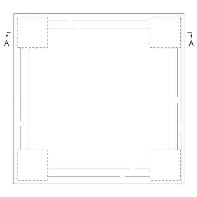 実線で表した部分が、部分意匠として意匠登録を受けようとする部分である。一点鎖線は、部分意匠として意匠登録を受けようとする部分とその他の部分との境界のみを示す線である。各図において、物品の表面部に表された細線は、いずれも立体表面の形状を表す線である。「包装用箱を破断した状態の正面図」、「包装用箱を破断した状態の背面図」、「包装用箱を破断した状態の平面図」、「包装用箱を破断した状態の右側面図」、「包装用箱を破断した状態の左側面図」、「包装用箱を破断した状態の斜視図」、「各部名称を示す包装用箱を破断した状態の参考斜視図」及び「包装用箱を破断した状態の参考斜視図」は、包装用箱を切取り線部で破断し、包装用箱上方部を取り外した状態である。「ペット用排泄物処理シート用結合パッドの拡大斜視図1」は、ペット用排泄物処理シート用結合パッドを広げた状態の平面側拡大斜視図であり、「ペット用排泄物処理シート用結合パッドの拡大斜視図2」は、ペット用排泄物処理シート用結合パッドを広げた状態の底面側拡大斜視図である。「包装用箱を破断した状態の参考斜視図」において、赤色で着色を施した部分以外の部分が、部分意匠として意匠登録を受けようとする部分である。