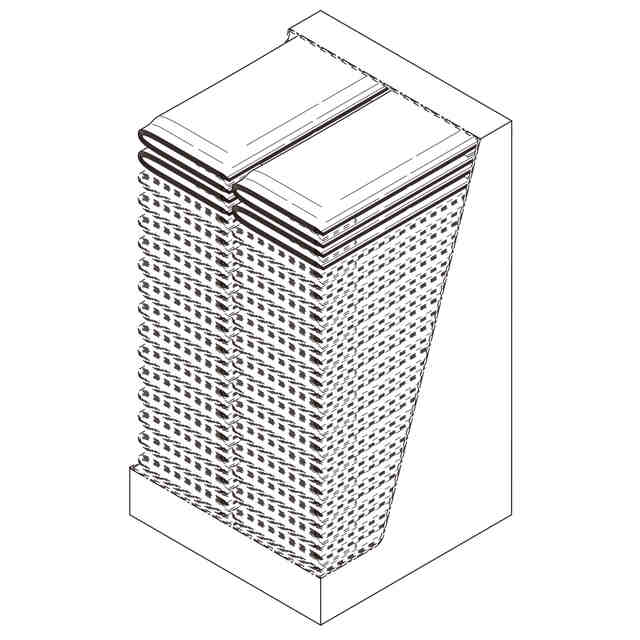 実線で表した部分が、部分意匠として意匠登録を受けようとする部分である。一点鎖線は、部分意匠として意匠登録を受けようとする部分とその他の部分との境界のみを示す線である。各図において、物品の表面部に表された細線は、いずれも立体表面の形状を表す線である。「包装用箱を破断した状態の正面図」、「包装用箱を破断した状態の平面図」、「包装用箱を破断した状態の右側面図」、「包装用箱を破断した状態の左側面図」、「包装用箱を破断した状態の縮小斜視図」、「各部名称を示す包装用箱を破断した状態の参考縮小斜視図」及び「包装用箱を破断した状態の参考縮小斜視図」は、包装用箱を切取り線部で破断し、包装用箱上方部を取り外した状態である。「ペット用排泄物処理シート用結合パッドの拡大斜視図2」は、ペット用排泄物処理シート用結合パッドを広げた状態の平面側拡大斜視図であり、「ペット用排泄物処理シート用結合パッドの拡大斜視図3」は、ペット用排泄物処理シート用結合パッドを広げた状態の底面側拡大斜視図である。「包装用箱を破断した状態の参考縮小斜視図」において、赤色で着色を施した部分以外の部分が、部分意匠として意匠登録を受けようとする部分である。