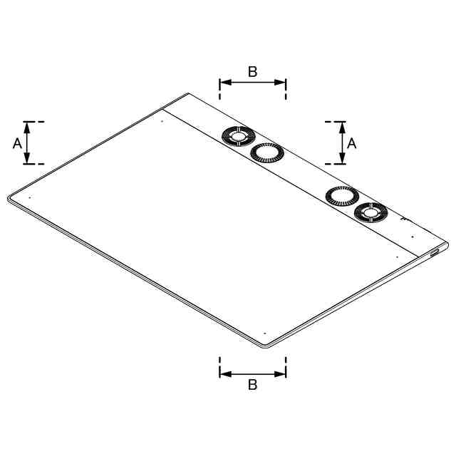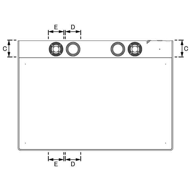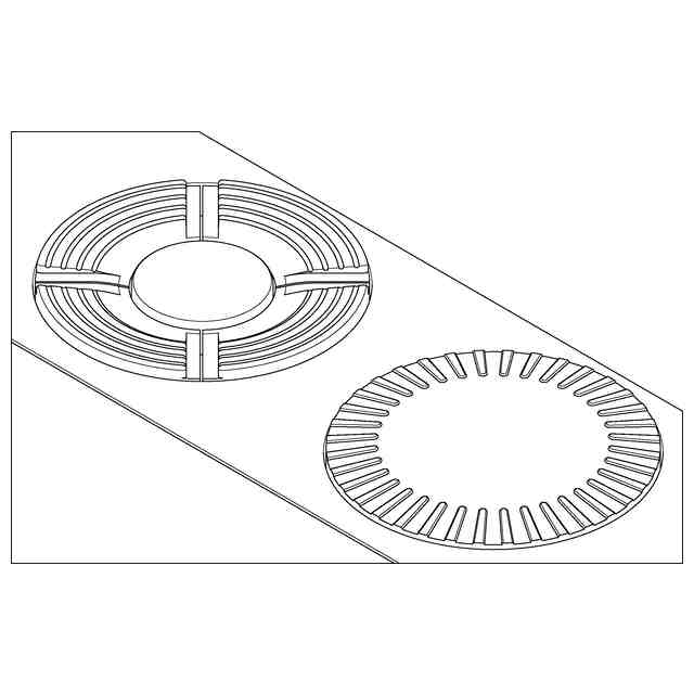 平面図において横一列の4つの円形として表れる部分は、それぞれボタンであり、外側の2つのボタンの形状と内側の2つのボタンの形状は、それぞれ同じである。