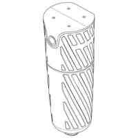 実線で表した部分が、部分意匠として意匠登録を受けようとする部分である。各図において、表面部に表された細線は、いずれも立体表面の形状を特定するためのものである。 斜視図1は、フィルタカートリッジの斜視図である。この斜視図1は、概してハンドル端部に向かって、第2の端部の反対側に、そしてメディアパック側に向かって示されている。 斜視図2は、フィルタカートリッジの別の斜視図である。この斜視図2は、斜視図1のフィルタカートリッジの第2の端部の斜視図である。 正面図は、フィルタカートリッジの正面図である。この正面図は、斜視図1のフィルタカートリッジの第1の側面図であり、正面図のビューは、概して図1で見える側に向かって示されている。 背面図は、フィルタカートリッジの背面図である。この背面図は、正面図に見える図とは反対側に向かって見た第2の側面図である。 右側面図は、フィルタカートリッジの右側面図である。この右側面図は、斜視図1のフィルタカートリッジの端面側面図である。 左側面図は、フィルタカートリッジの左側面図である。この左側面図は、右側面図のビューの反対側の第2の端面側面図である。 平面図は、フィルタカートリッジの平面図である。この平面図は、斜視図1のフィルタカートリッジのハンドル端面図である。見える端部は、斜視図1で見える端部である。 底面図は、フィルタカートリッジの底面図である。この底面図は、平面図のビューとは反対側から見た、斜視図1のフィルタカートリッジの第2の端面図である。