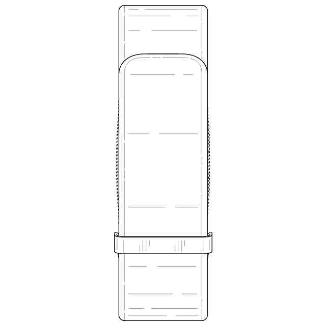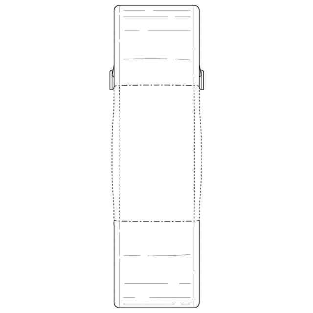 実線で表された部分が意匠登録を受けようとする部分であり、破線で表された部分は意匠登録を受けようとする部分ではない。一点鎖線は、部分意匠として登録を受けようとする部分とそれ以外の部分の境界を表す。
