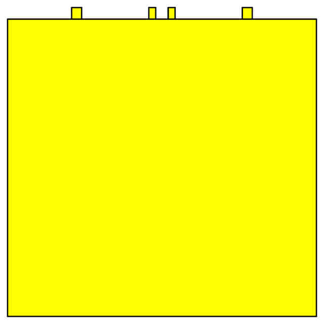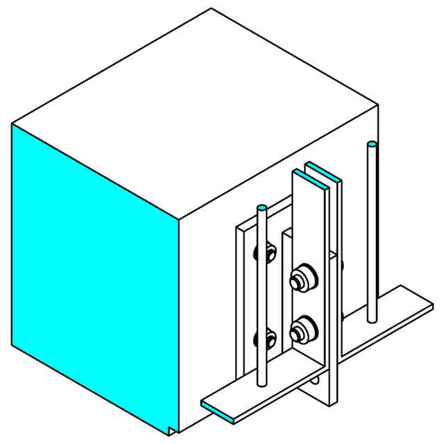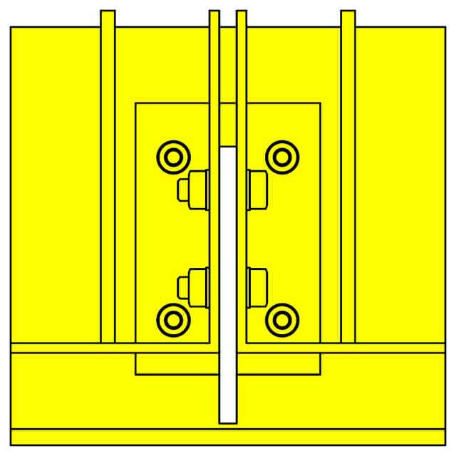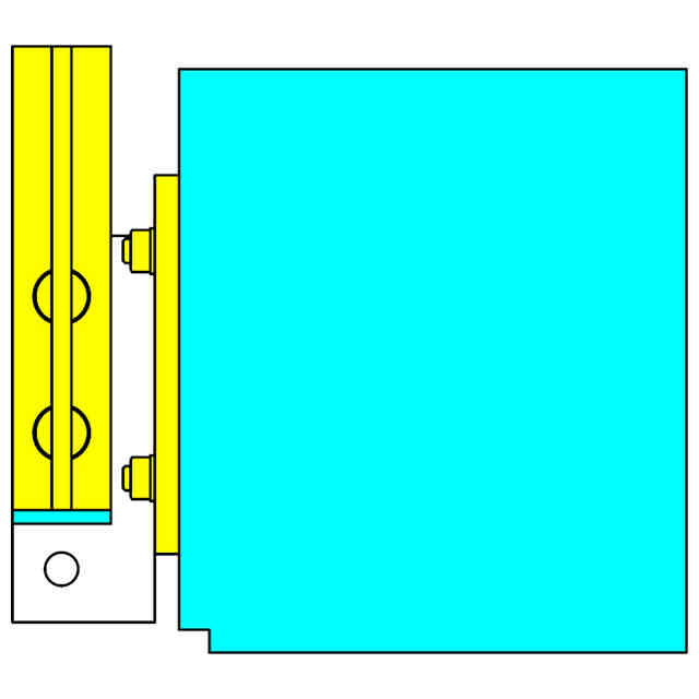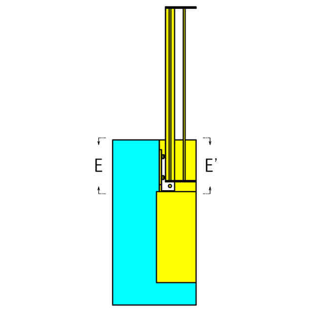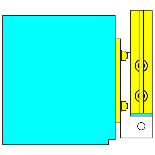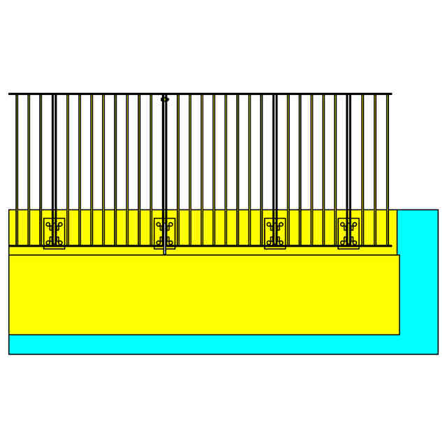 黄色に着色した部分以外の部分が、意匠登録を受けようとする部分である。部分拡大図において、水色に着色した部分は、断面形状のみを表すものである。意匠登録を受けようとする部分は、手摺りを建築物本体に固定するための手摺り支柱受け部である。前記手摺り支柱受け部は、手摺りよりも下方に延びた部分を有し、そこに貫通孔が設けられている。前記貫通孔は、建築物の外壁や窓などの清掃や補修などのために命綱などのロープやワイヤーなどを掛けるためのものである。