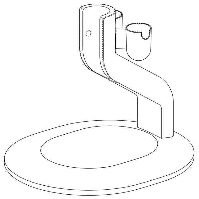 実線で表された部分が、意匠登録を受けようとする部分である。右側面図は、左側面図と対称に表れるため省略する。