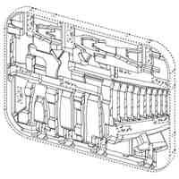 図面にあらわされる表面の濃淡は、立体表面の形状を特定するために施したものである。参考斜視図は電池及びフックが取り付けられた状態を示す。
