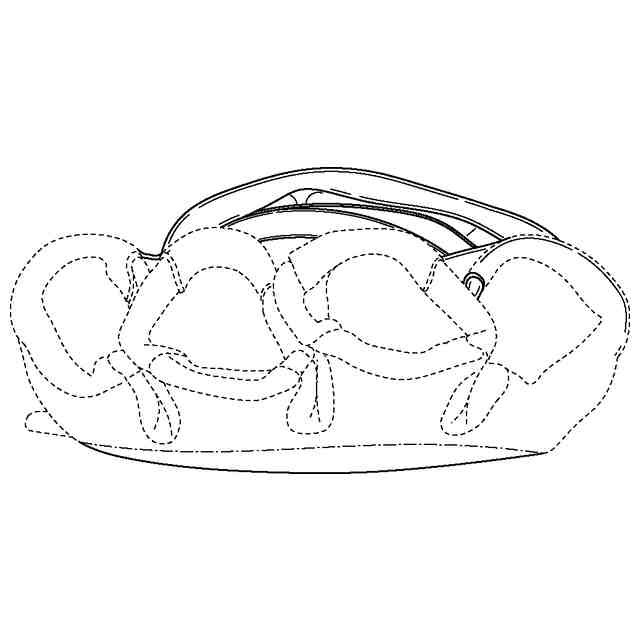 実線で表された部分が意匠登録を受けようとする部分である。一点鎖線は意匠登録を受けようとする部分とその他の部分との境界のみを示す線である。実線で表された部分における途切れ状細線は立体表面の形状を特定するためのものである。