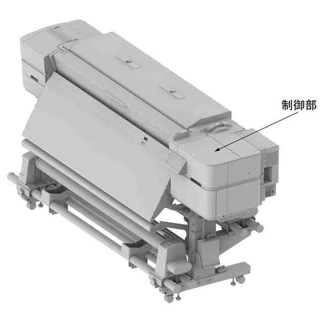 本物品は、印刷動作等を制御する制御部を備える、ロール紙等に印刷可能な大型プリンターである。意匠登録を受けようとする部分は、制御部の一部である。