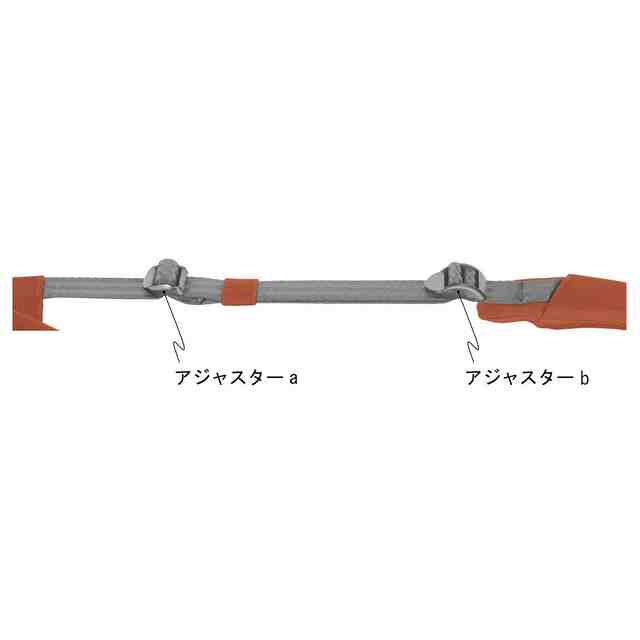 この意匠に係る物品は、2つのアジャスターを用いて肩ベルトの長さを調節することができるものである。アジャスターaを用いることにより、変化した状態を示す意匠登録を受けようとする部分の拡大斜視図1に示すように肩ベルトの長さを長くしたり、あるいは短くしたりすることができるものであり、また、アジャスターbを用いることにより、変化した状態を示す意匠登録を受けようとする部分の拡大斜視図2に示すように、アジャスターa、b間の肩ベルトの長さを短くすることができるものである。これにより、例えば、アジャスターaを用いて本物品をゆったり背負える長さに肩ベルトを調節したのち、本物品を背負った状態でアジャスターbを用いて肩ベルトの長さを短くすることにより、本物品を体に密着させることができる。また、アジャスターbを用いて肩ベルトの長さを長くする際も、アジャスターaにより調節した肩ベルトの長さ以上に肩ベルトが伸びないようにすることができるものである。