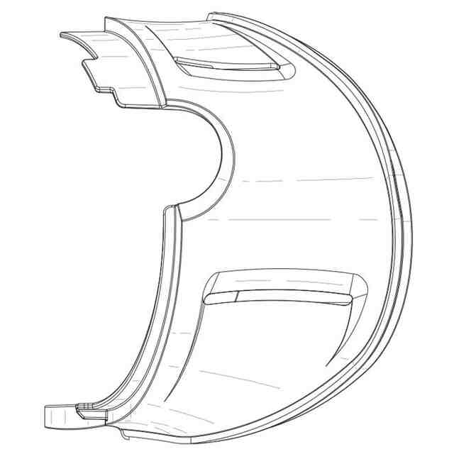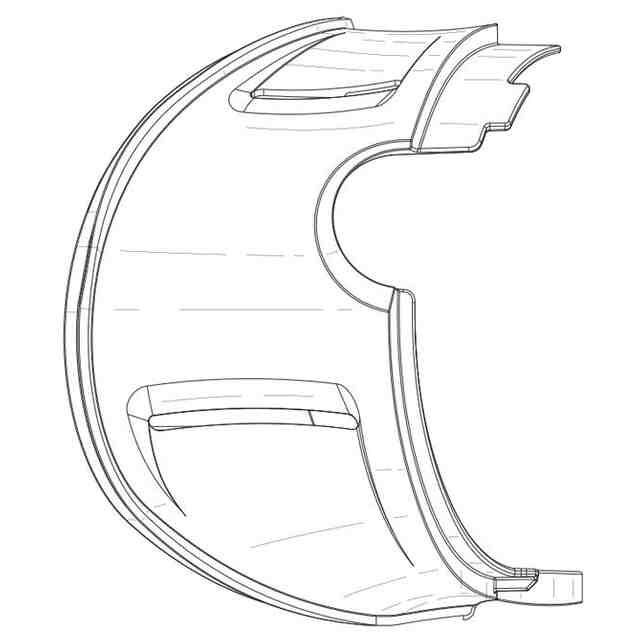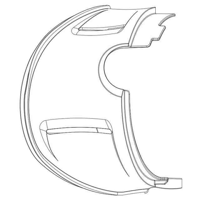実線で表した部分が、意匠登録を受けようとする部分である。各図において、面形状の変化部に表された線(ワイヤーフレーム)は模様を表す線ではなく、いずれも立体表面の形状を表す線である。