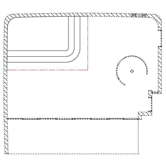 意匠登録を受けようとする部分を実線で、それ以外の部分を破線で表した。赤色の一点鎖線は、意匠登録を受けようとする部分とそれ以外の部分との境界のみを示すものである。参考透視図において、薄青色を施した部分は透明である。