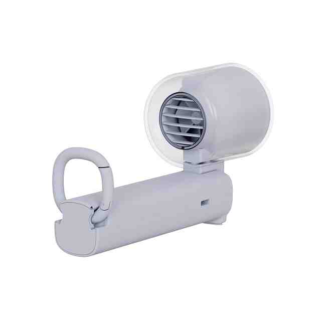 本物品は、ポータブルファン(携帯型扇風機)であって、手持部を二段階に折り曲げる(畳む)ことができる。ファンの正面側の円形部分は、ペルチェ素子冷却プレートであり、頬やおでこ、手首、首元等に押し当てることで、冷感を与える。