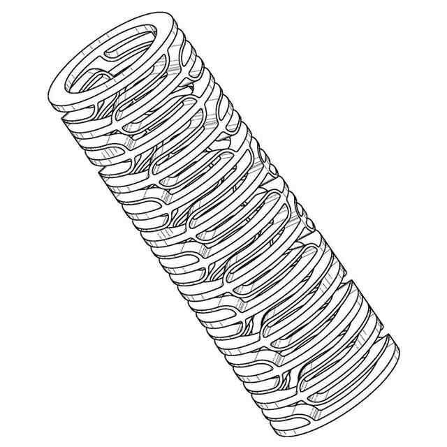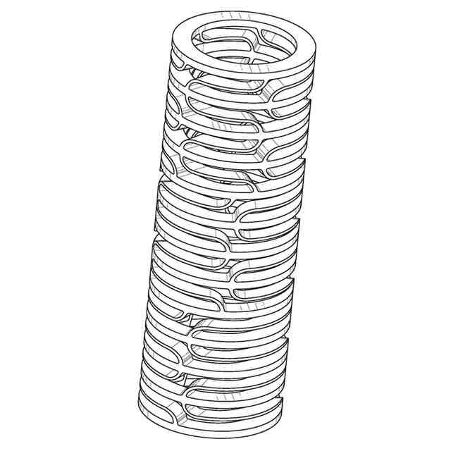 本物品は、カテーテル本体のレイヤーの長手方向のセグメントであり、カテーテルの内部に使用される内部補強材である。使用状態の一例を示す各参考図に示されるように、屈曲の中でもカテーテルの内腔の潰れを抑え、また、ピッチ幅を変化させることによって優れたプッシャビリティを実現することができる。