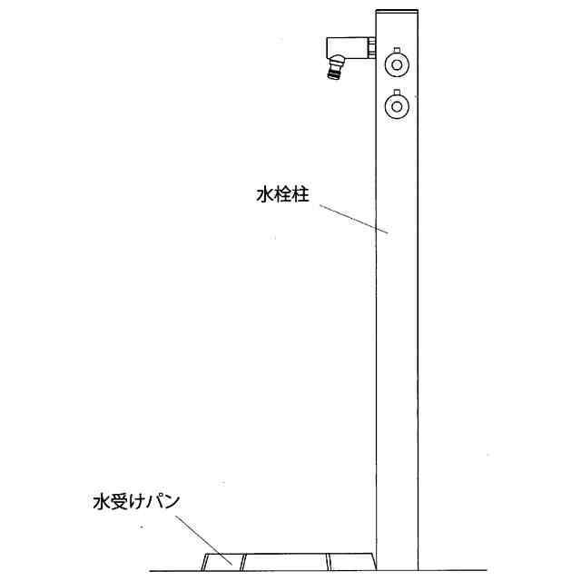 「使用状態参考図」に示すように、本物品「水受けパン」は、水栓柱と共に用いられ、水栓柱から流れる水を受けるために使用される。