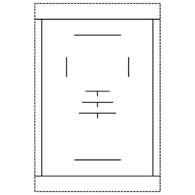 本画像は、撮影機器、あるいは、撮影機器を遠隔操作する他の情報機器において、ライブビュー映像に重畳するように表示され、所定の構図にあった人物写真の撮影を支援するために用いられる画像である。撮影者は、本画像と被写体の重なり方を確認しながら、構図の調整を行う。「画像図1」は、顔の位置の目安となる上下左右の線があり、その下部に胸の位置の目安となる線があり、バストショット(胸上写真)の撮影に用いられる画像を表す。顔の位置の目安となる下の線が複数あることで、異なる顔の大きさの被写体に対応することが出来る。また、「画像図1」は撮影機器を縦位置で使用する場合に表示される画像を表す。「画像図2」は、撮影機器を横位置で使用する場合に表示される画像を表す。「画像図1」と「画像図2」は縦位置と横位置の関係にあり、いずれかの画像を表示中に撮影機器を90度傾けると撮影機器の向きに応じて、自動的に画像が切り替わる。「使用例参考画像図1」および「使用例参考画像図2」は、目安線に従って被写体がバストショットに適切な位置に配置された状態を表している。