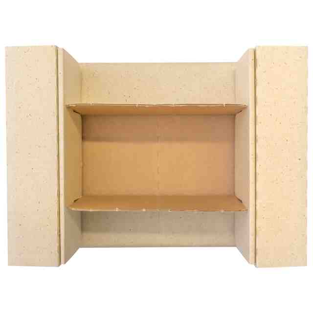 本物品は、段ボールなどの厚めの紙を組み立てることによって作成されるテーブルである。防災時などにも利用できる。