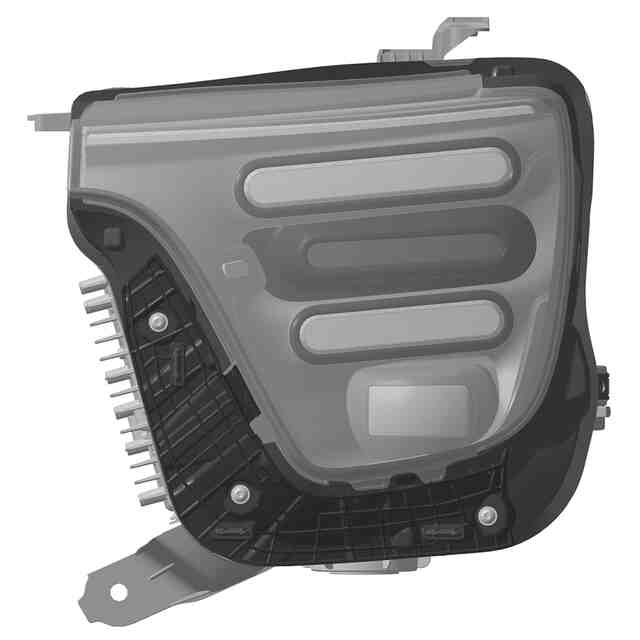 Design 2 is used as a front combination lamp for vehicles. 2.1)Front; 2.2)Back; 2.3)Left; 2.4)Right; 2.5)Top; 2.6)Bottom; 2.7)Perspective