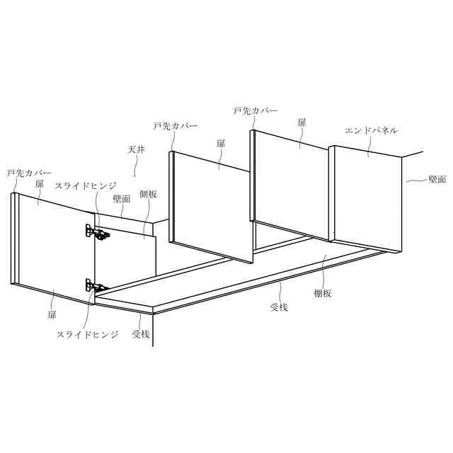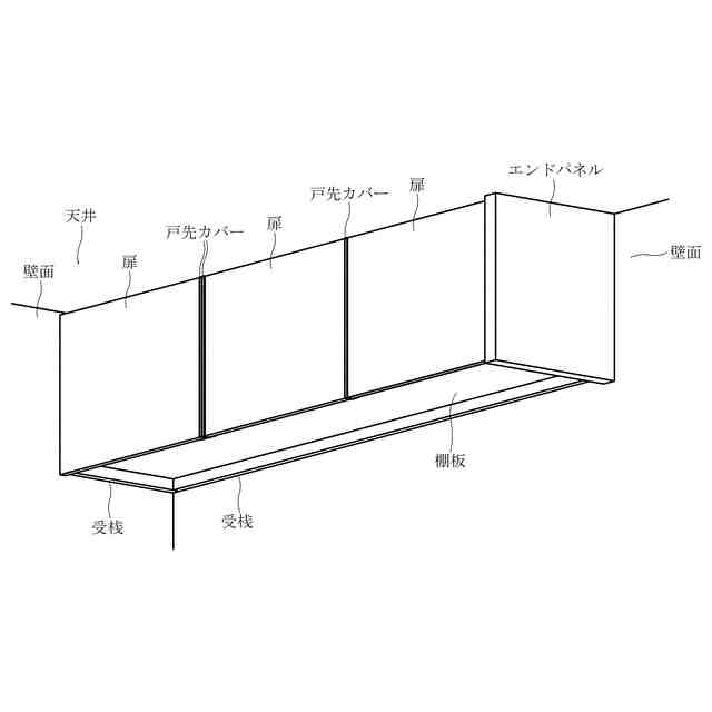 本物品は、参考図に示すように室内の片入隅に設置する吊り棚である。