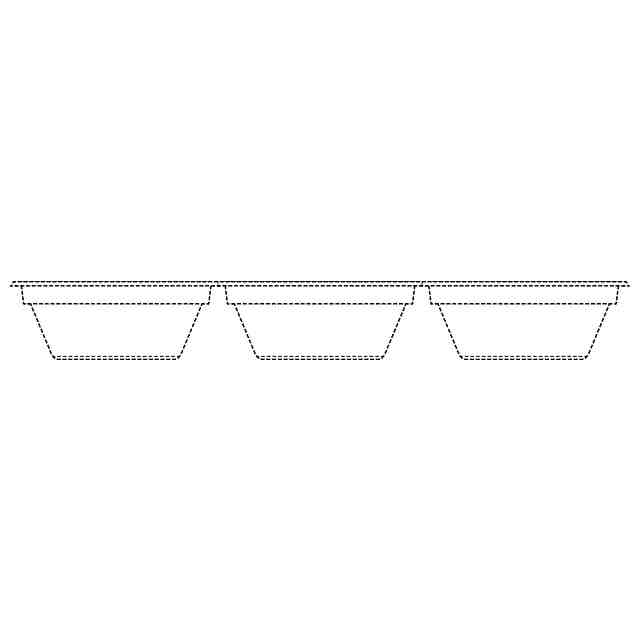 実線で示した部分が、部分意匠として意匠登録を受けようとする部分である。一点鎖線は、意匠登録を受けようとする部分とその他の部分との境界のみを示す線である。平面図において、横方向に延びる1本の中央線及び該中央線に直交する2本の縦線は、いずれもミシン目を示す。断面図を含めて、部分意匠として意匠登録を受けようとする部分を特定している。