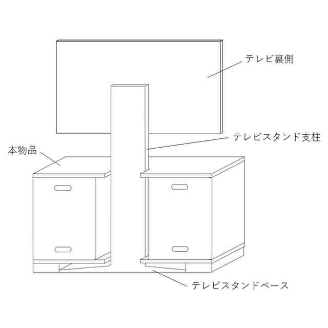 本物品は、内部空間が形成された箱状体からなり、背面にテレビ等の表示装置を支持する支柱が配設可能な切り欠き部が凹設された収納家具である。