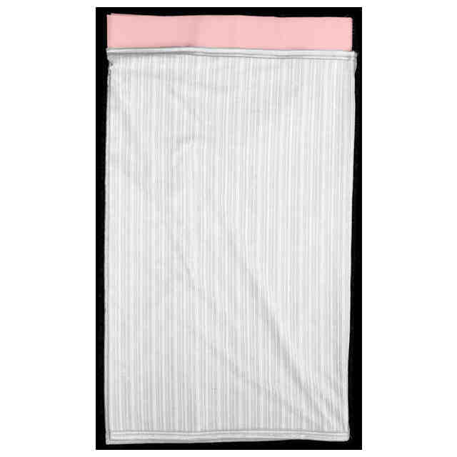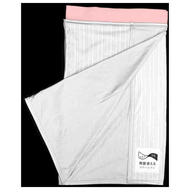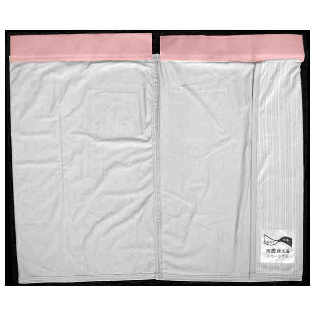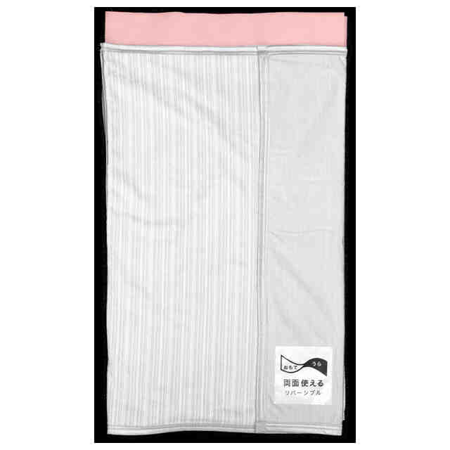 本物品は、布団やシーツなどの織物地や不織布といった生地の感触や冷感を確認することができる展示用生地見本である。本物品は、二種類の異なる生地を表裏に合わせることにより、リバーシブルタイプの商品見本を再現することができるものである。本物品は、一枚めくると裏生地が現われるように、折り重ねられている。本物品の表生地及び裏生地の一端は谷折りに折り返されて袋状となっており、当該袋状部に、腕を入れることで、生地に包まれたときの感触を確かめることができる。