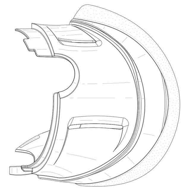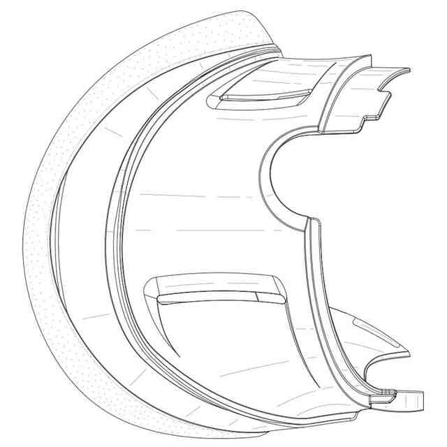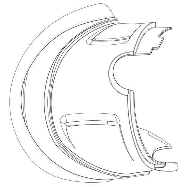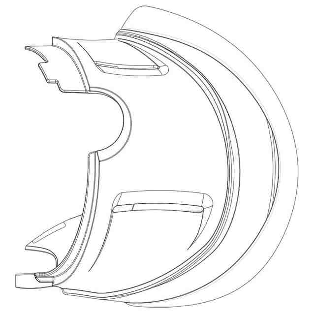 実線で表した部分が、意匠登録を受けようとする部分である。各図において、面形状の変化部に表された線(ワイヤーフレーム)は模様を表す線ではなく、いずれも立体表面の形状を表す線である。