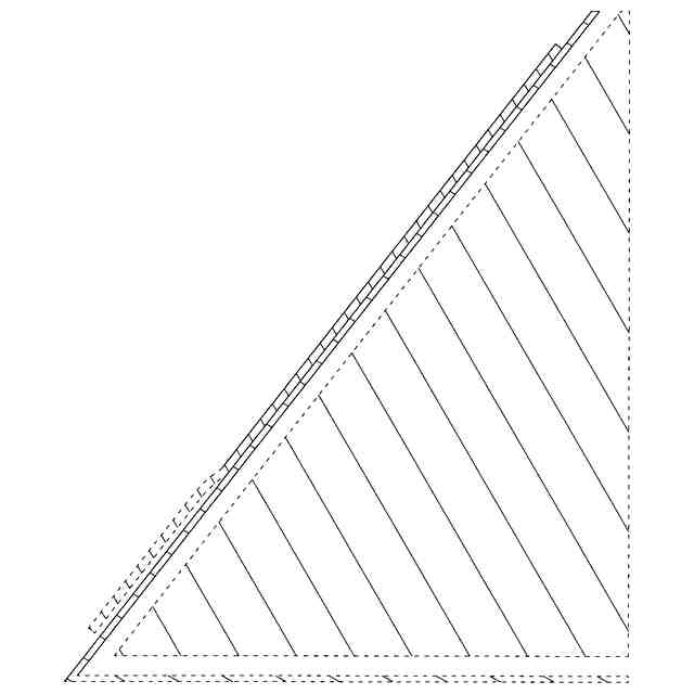 実線であらわした部分が、意匠登録を受けようとする部分である。一点鎖線は意匠登録を受けようとする部分とその他の部分の境界のみを示す線である。端面図及び断面図を含めて意匠登録を受けようとする部分を特定している。本物品の包装用フィルムは、透明である。