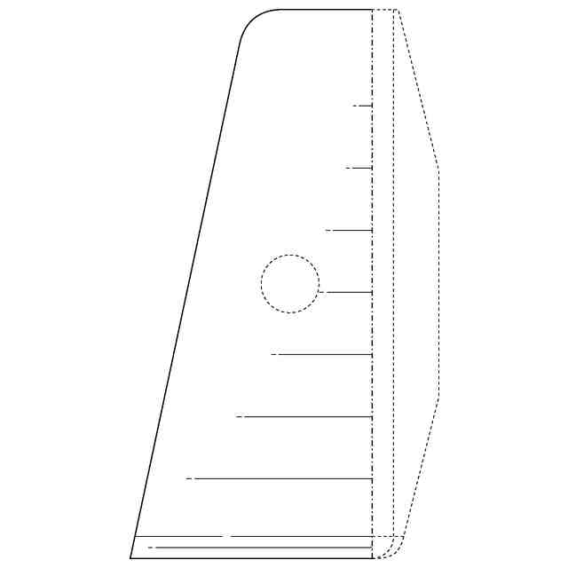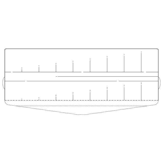 実線で表された部分が意匠登録を受けようとする部分である。一点鎖線は意匠登録を受けようとする部分とそれ以外の部分との境界のみを示す線である。実線で表された部分における途切れ状細線は立体表面の形状を特定するためのものである。