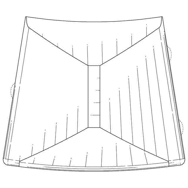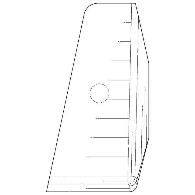 実線で表された部分が意匠登録を受けようとする部分である。実線で表された部分における途切れ状細線は立体表面の形状を特定するためのものである。