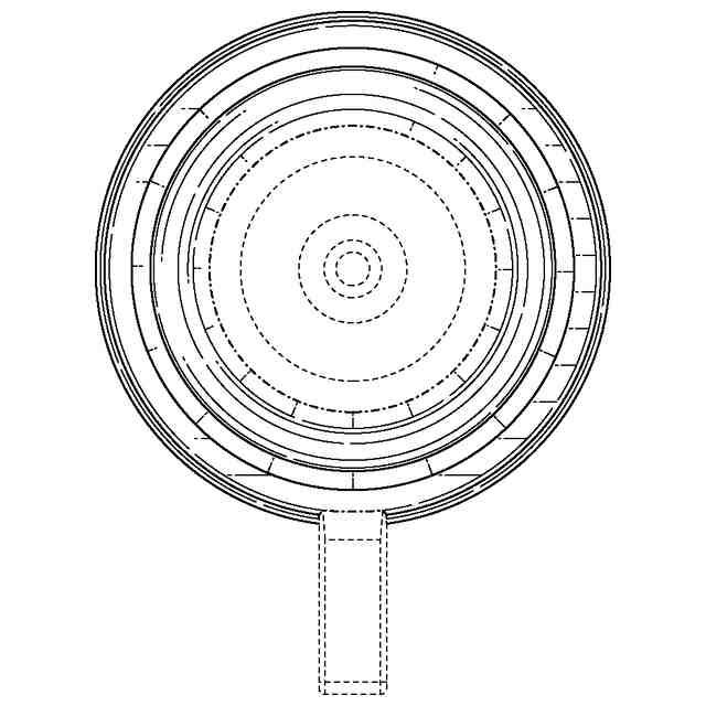 実線で表された部分が、意匠登録を受けようとする部分である。一点鎖線は、意匠登録を受けようとする部分とその他の部分との境界のみを示す線である。図面に表されている破切れた細線は、模様を表す線ではなく、いずれも立体表面の形状を表す線である。