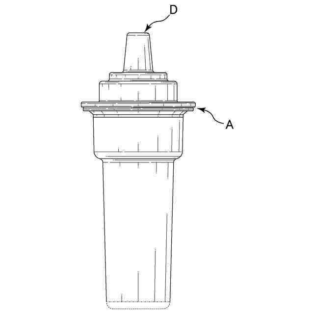 本願意匠に係る物品「ディスペンサー」は、診断検査のための液体を小出しするのに使用され、「ディスペンサーの参考図」のAのところを分離することによって、液体を追加することができ、孔Dから液体を小出しする。
