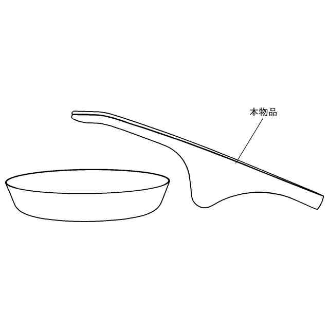 本物品は、たとえば焼肉時の肉などを掴むためのトングであって、設置部の占有面積が小さく、設置時の先端部(左右の掴み部)が高い位置となる形状であるため、置いておく際に先端部をたとえば皿の上に配置できることになり、無駄に場所を取らずに置くことができるトングである。
