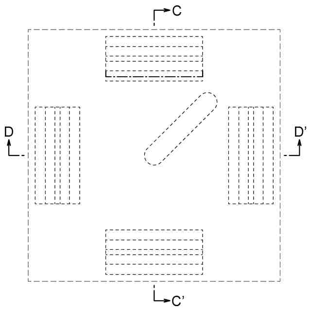 一点鎖線で囲まれた部分が、意匠登録を受けようとする部分である。一点鎖線は、意匠登録を受けようとする部分とそれ以外の部分との境界を表わすものである。A-A’,B-B’拡大図、A-A’,B-B’拡大斜視図、D-D’断面図を含めて意匠登録を受けようとする部分を特定している。C-C’断面図では、実線で示された部分が意匠登録を受けようとする部分である。C-C’断面図を含めて意匠登録を受けようとする部分を特定している。