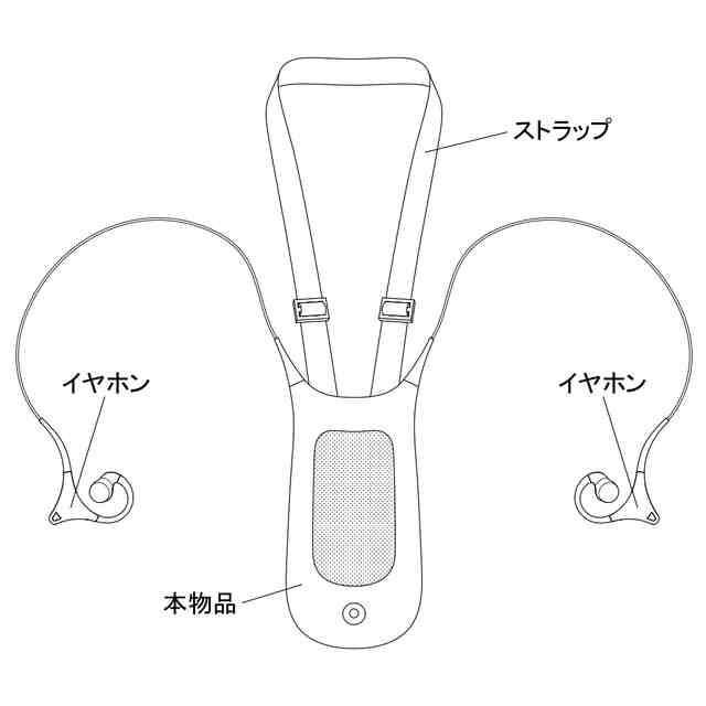本物品は、音声情報ガイド機能、生体情報表示機能等を有する携帯情報端末機である。本物品を別途バイタルセンサ付きイヤホンと接続することで、ユーザに前記音声情報や生体情報(心拍数、RR間隔等)を与えることができる。例えば、博覧会のパビリオン等の来館者にこれら情報を提示する端末機として用いることも可能である。本物品を前記イヤホンと「ケーブル接続部」で接続し、「ストラップホルダ部」にストラップを装着した状態を「使用状態を示す参考図」に表わす。