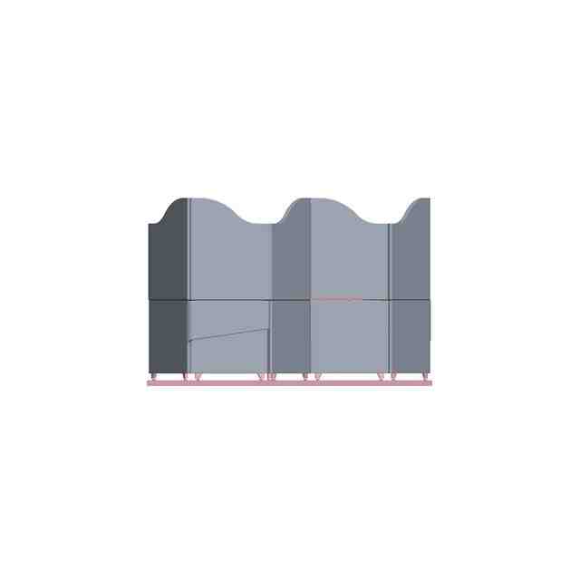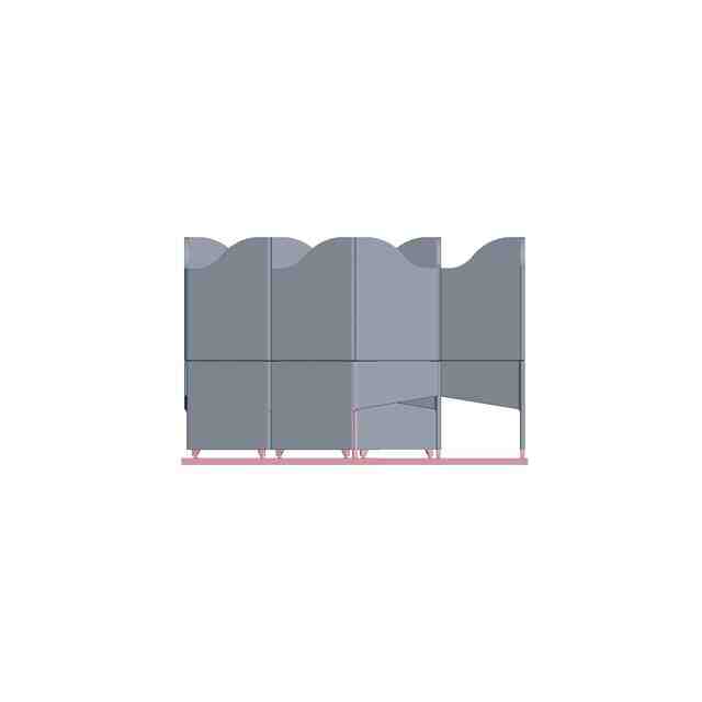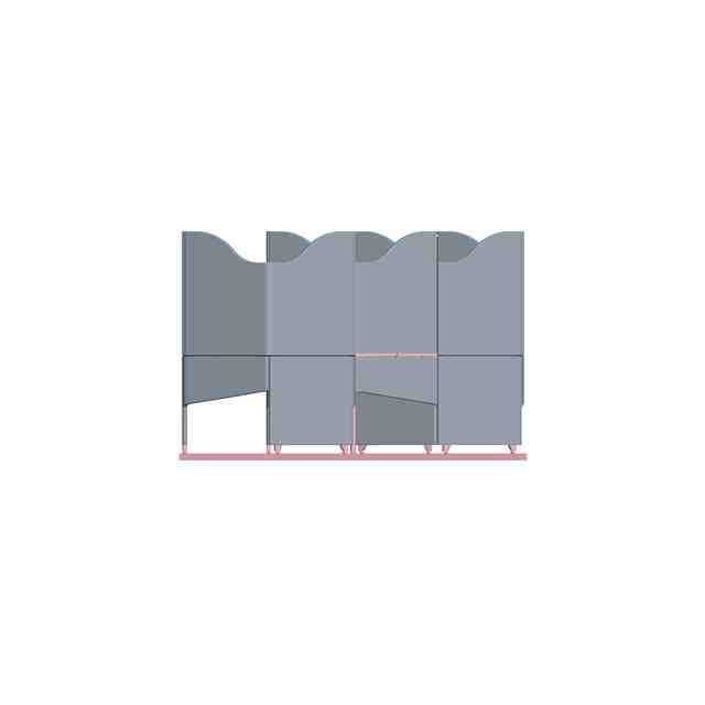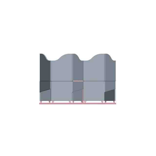 赤色で着色した部分以外の部分が、意匠登録を受けようとする部分である。各図面の表面部全面に表された濃淡は、いずれも立体表面の形状を表す濃淡である。なお、床面とブースの天板の着色についても区別できるよう、濃淡をつけている。