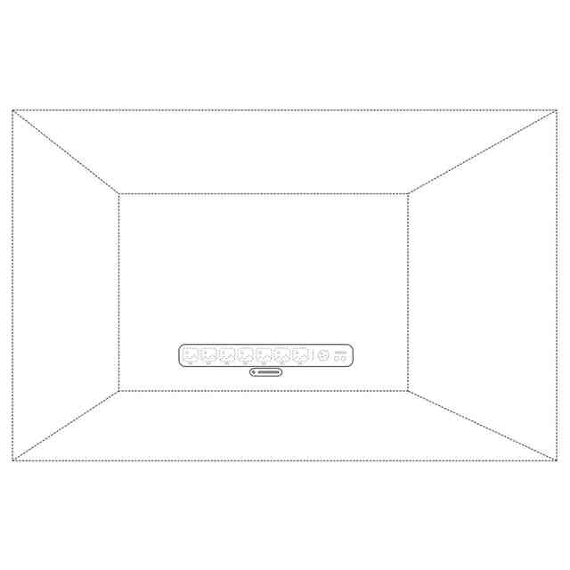 画像図に表されたGUIは、電子機器で使用中のプログラムを表示するためのものである。画像図の中央やや下方位置に表された横長隅丸矩形状部内に使用中のプログラムが表示され、ユーザーがクリックすると、クリックしたプログラムに切り替わる。当該横長隅丸矩形状部の下方に表された小さな横長トラック状部は、コントロールバーである。