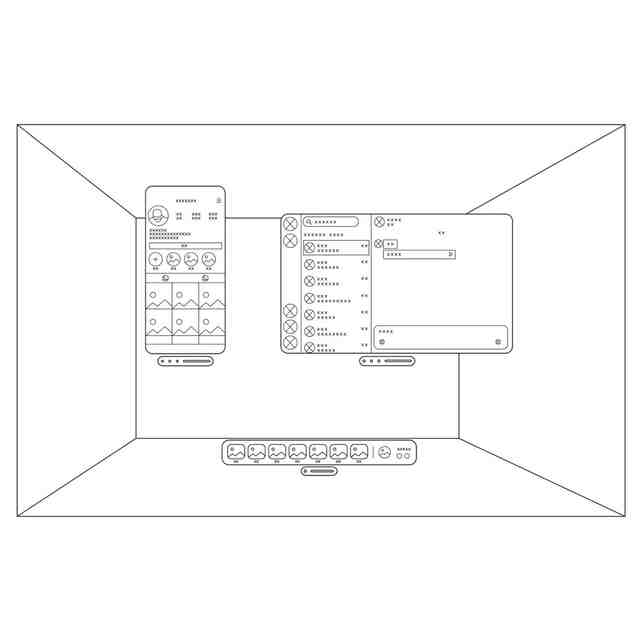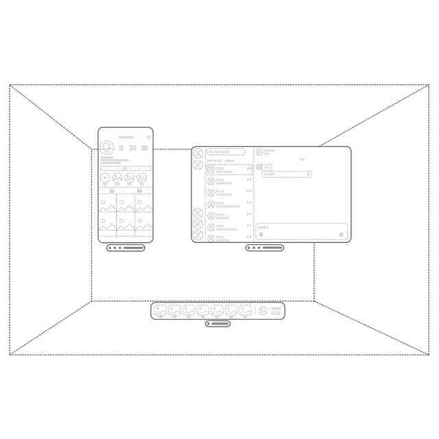 画像図に表されたGUIは、電子機器で使用中のプログラムを表示するためのものである。画像図に表れた3つの各隅丸矩形状部内に現在使用中のプログラムが表示され、ユーザーがいずれかをクリックすると、クリックしたプログラムに切り替わる。各隅丸矩形状部の下方に表された小さな横長トラック状部は、コントロールバーである。