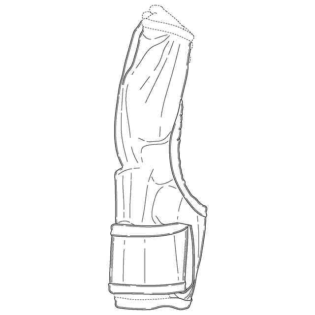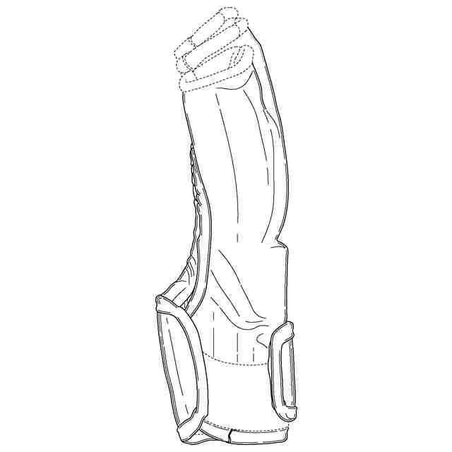 実線で表された部分が意匠登録を受けようとする部分である。実線で表された部分における途切れ状細線は立体表面の形状を特定するためのものである。